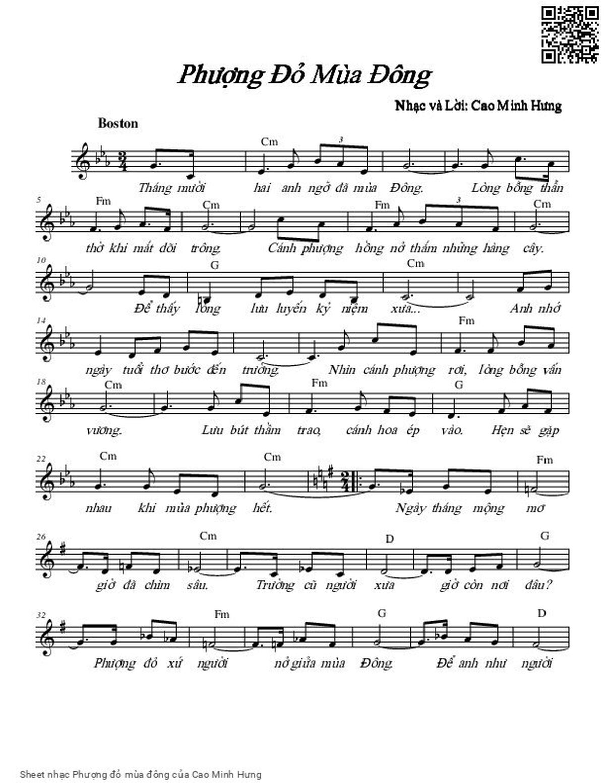 Cao Minh Hưng Tháng Mười Hai anh ngỡ đã mùa Đông Lòng bỗng thẫn thờ khi mắt dõi trông [PDF] [Sheet] [Lyrics] [Mp4/Midi]