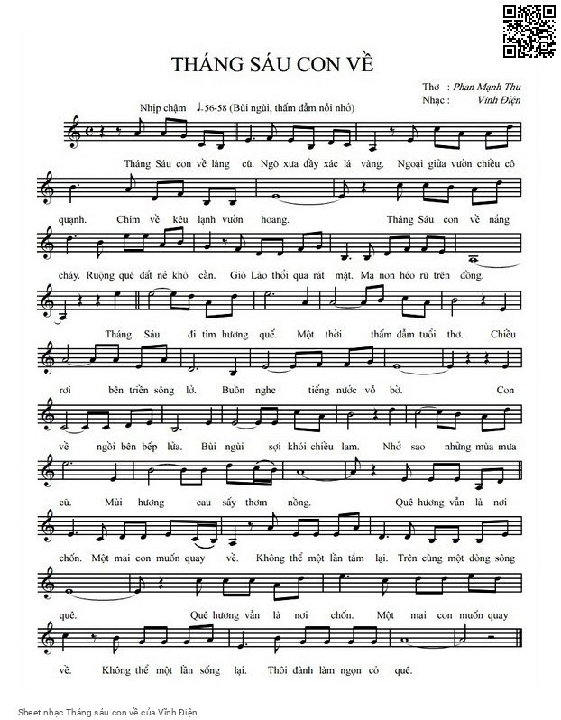 Vĩnh Điện Tháng sáu con về làng cũ Ngõ xưa đầy xác lá vàng [PDF] [Sheet] [Lyrics] [Mp4/Midi]