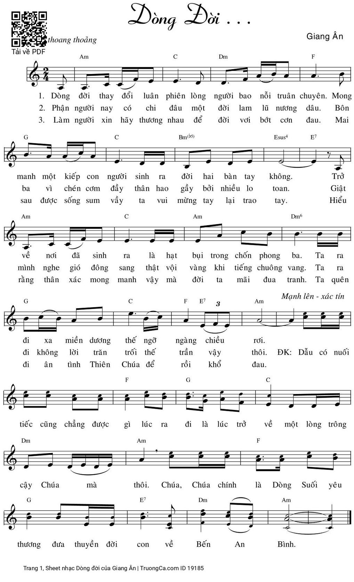 Giang Ân Thánh Ca Vào Đời Dòng đời thay đổi luân phiên [PDF] [Sheet] [Lyrics] [Mp4/Midi]