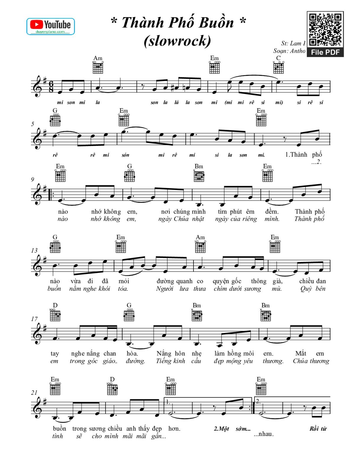 Lam Phương Thành phố nào nhớ không em [PDF] [Sheet] [Lyrics] [Mp4/Midi] [Story and comment]