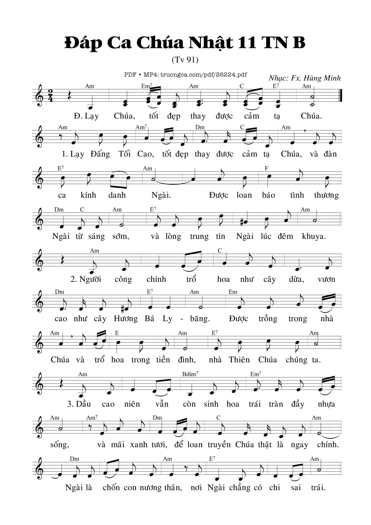 More similar sheets PDF Thánh Vịnh 91, Chúa Nhật 11B Thường Niên:
