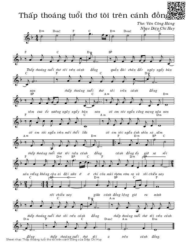Diệp Chí Huy Thấp thoáng tuổi thơ tôi trên cánh đồng [PDF] [Sheet] [Lyrics] [Mp4/Midi]