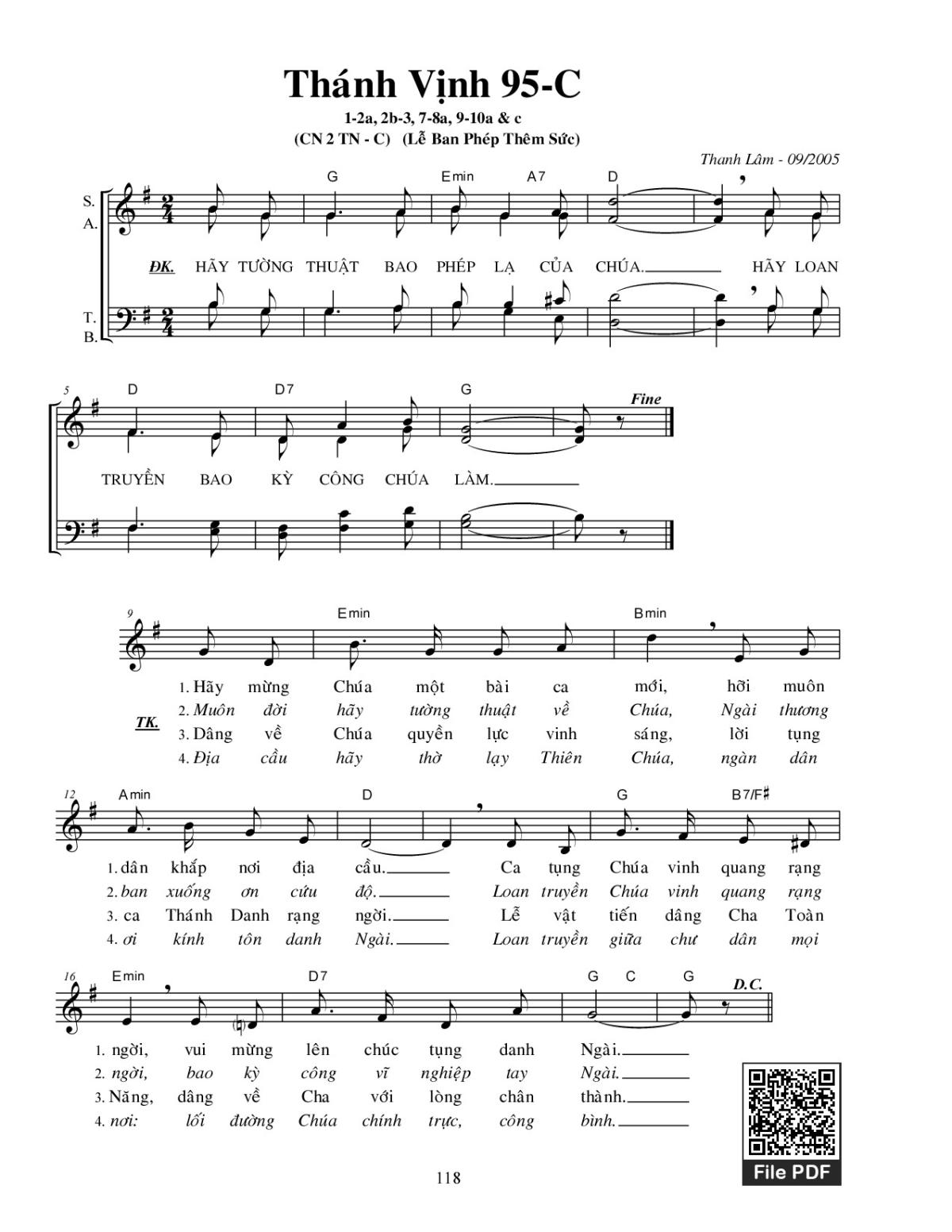 More similar sheets PDF Thánh Vịnh 95, Chúa Nhật 2C Thường Niên: