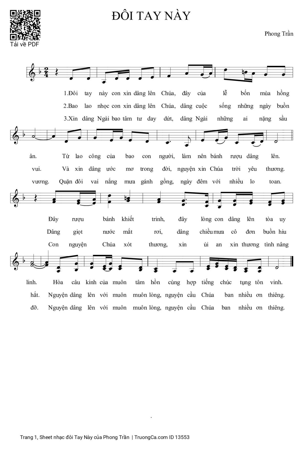 Phong Trần Thể hiện Vũ Phong Vũ Đôi tay này con xin dâng lên Chúa [PDF] [Sheet] [Lyrics] [Mp4/Midi]