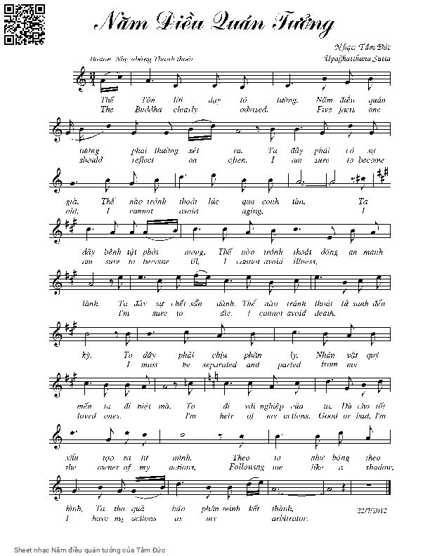 Tâm Đức Thế Tôn lời dạy tỏ tường Năm điều quán tưởng phải thường xét ra [PDF] [Sheet] [Lyrics] [Mp4/Midi]