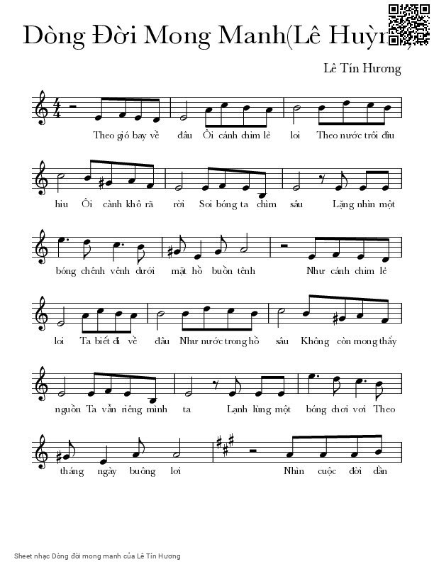 Lê Tín Hương Theo gió bay về đâu Ôi cánh chim lẻ loi [PDF] [Sheet] [Lyrics] [Mp4/Midi]