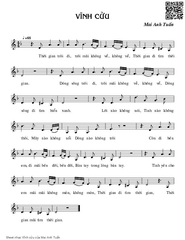 Mai Anh Tuấn Thời gian trôi đi trôi mãi không về không về [PDF] [Sheet] [Lyrics] [Mp4/Midi]