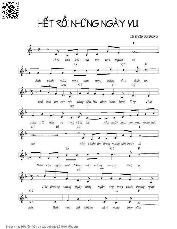 The Videos/audios Hết rồi những ngày vui by Lê Uyên Phương were embed from Youtube, Musescore or the other 3rd links. Videos are subject to 3rd's copyright control and may be removed by YouTube's copyright rules and 3rd's policies or maybe included advertisements. If you cannot access to these songs, this mean that have been removed.