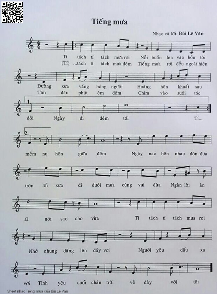 Bùi Lê Văn Tí tách tí tách mưa rơi Nỗi buồn len vào hồn tôi [PDF] [Sheet] [Lyrics] [Mp4/Midi]