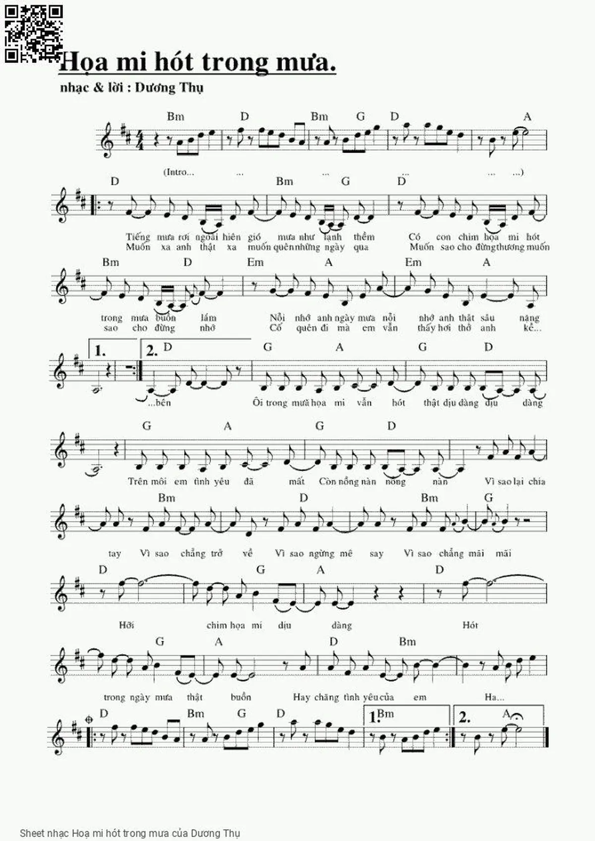 The Videos/audios Hoạ mi hót trong mưa by Dương Thụ were embed from Youtube, Musescore or the other 3rd links. Videos are subject to 3rd's copyright control and may be removed by YouTube's copyright rules and 3rd's policies or maybe included advertisements. If you cannot access to these songs, this mean that have been removed.