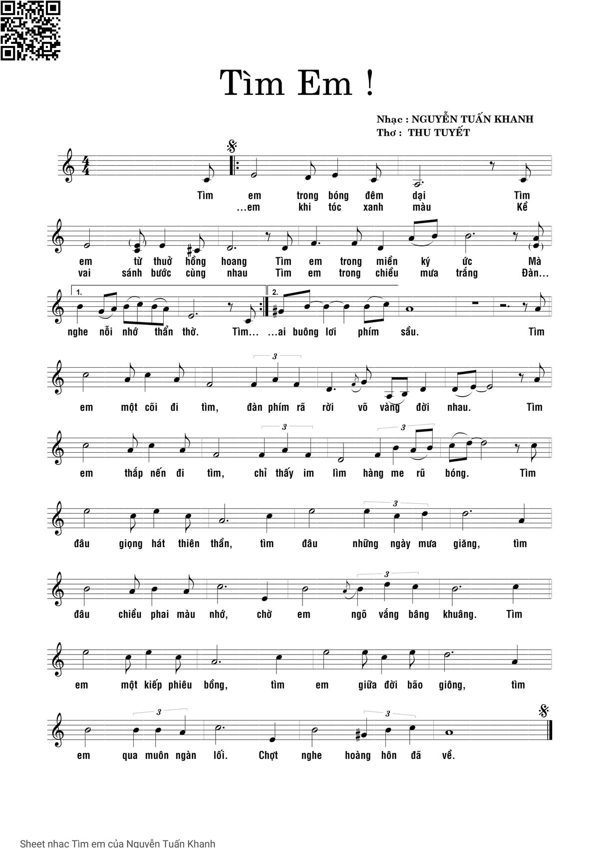 Nguyễn Tuấn Khanh Tìm em trong bóng đêm dài Tìm em từ thuở hồng hoang [PDF] [Sheet] [Lyrics] [Mp4/Midi]