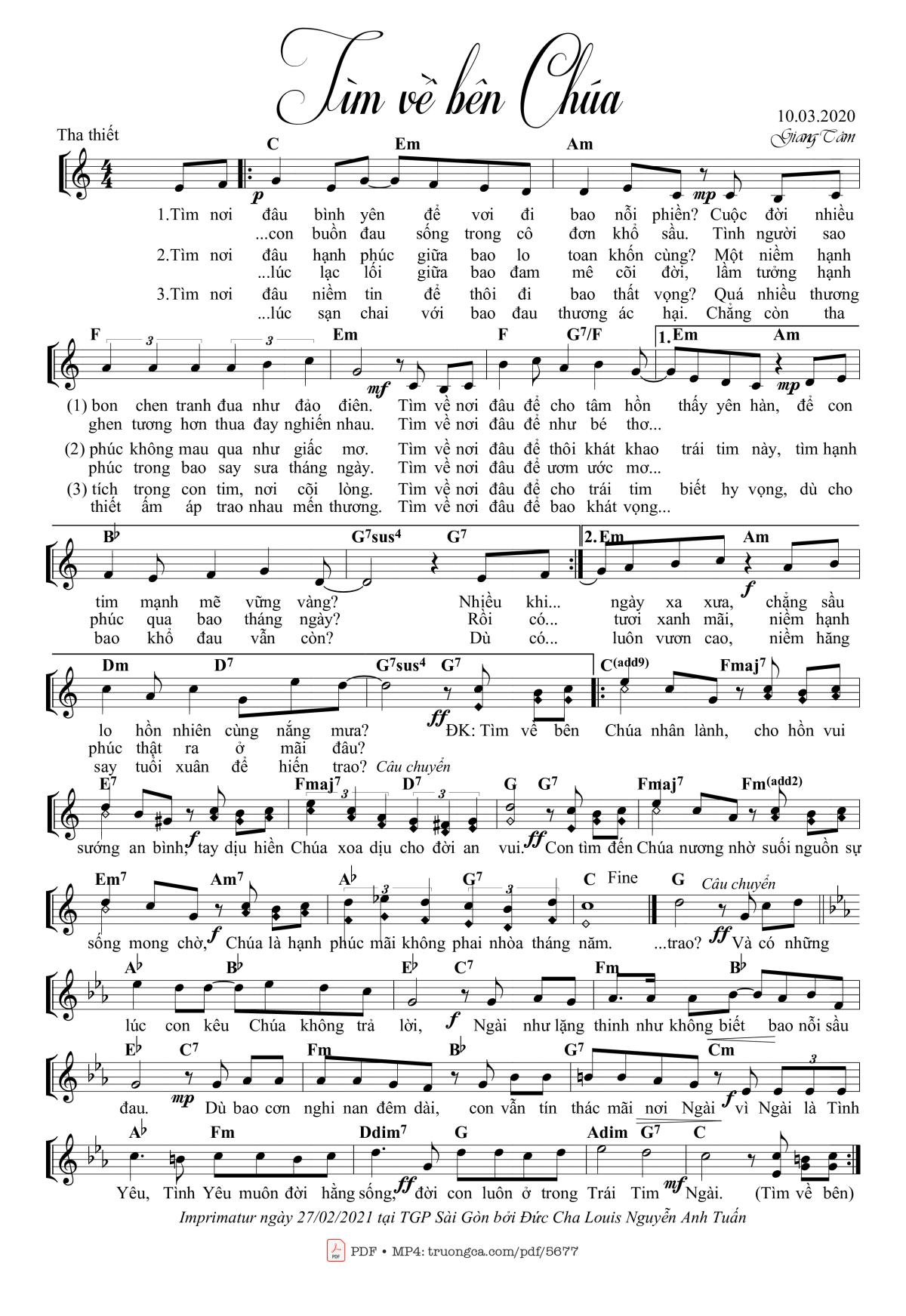 The Videos/audios Tìm về bên chúa by Giang Tâm were embed from Youtube, Musescore or the other 3rd links. Videos are subject to 3rd's copyright control and may be removed by YouTube's copyright rules and 3rd's policies or maybe included advertisements. If you cannot access to these songs, this mean that have been removed.