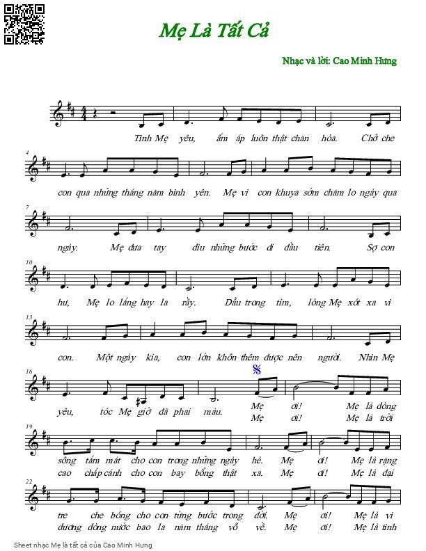 Cao Minh Hưng Tình Mẹ yêu ấm áp luôn thật chan hoà [PDF] [Sheet] [Lyrics] [Mp4/Midi]