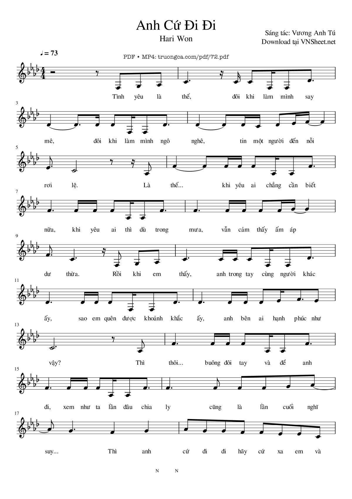 The Videos/audios Anh cứ đi đi by Vương Anh Tú were embed from Youtube, Musescore or the other 3rd links. Videos are subject to 3rd's copyright control and may be removed by YouTube's copyright rules and 3rd's policies or maybe included advertisements. If you cannot access to these songs, this mean that have been removed.