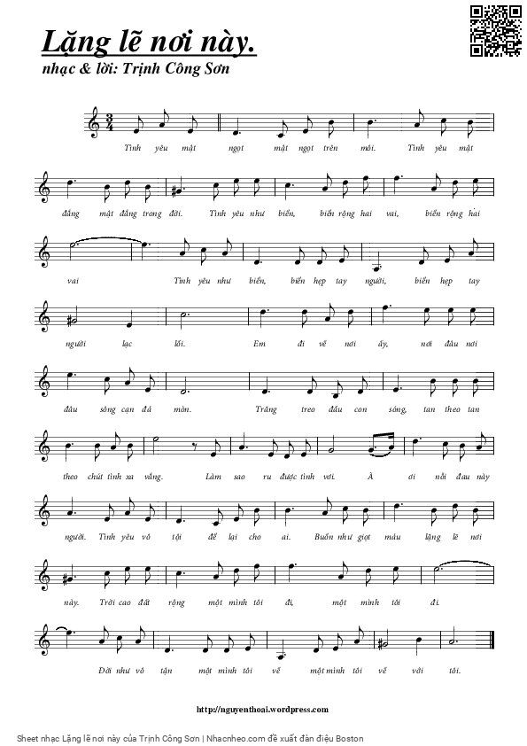 The Videos/audios Lặng lẽ nơi này by Trịnh Công Sơn were embed from Youtube, Musescore or the other 3rd links. Videos are subject to 3rd's copyright control and may be removed by YouTube's copyright rules and 3rd's policies or maybe included advertisements. If you cannot access to these songs, this mean that have been removed.