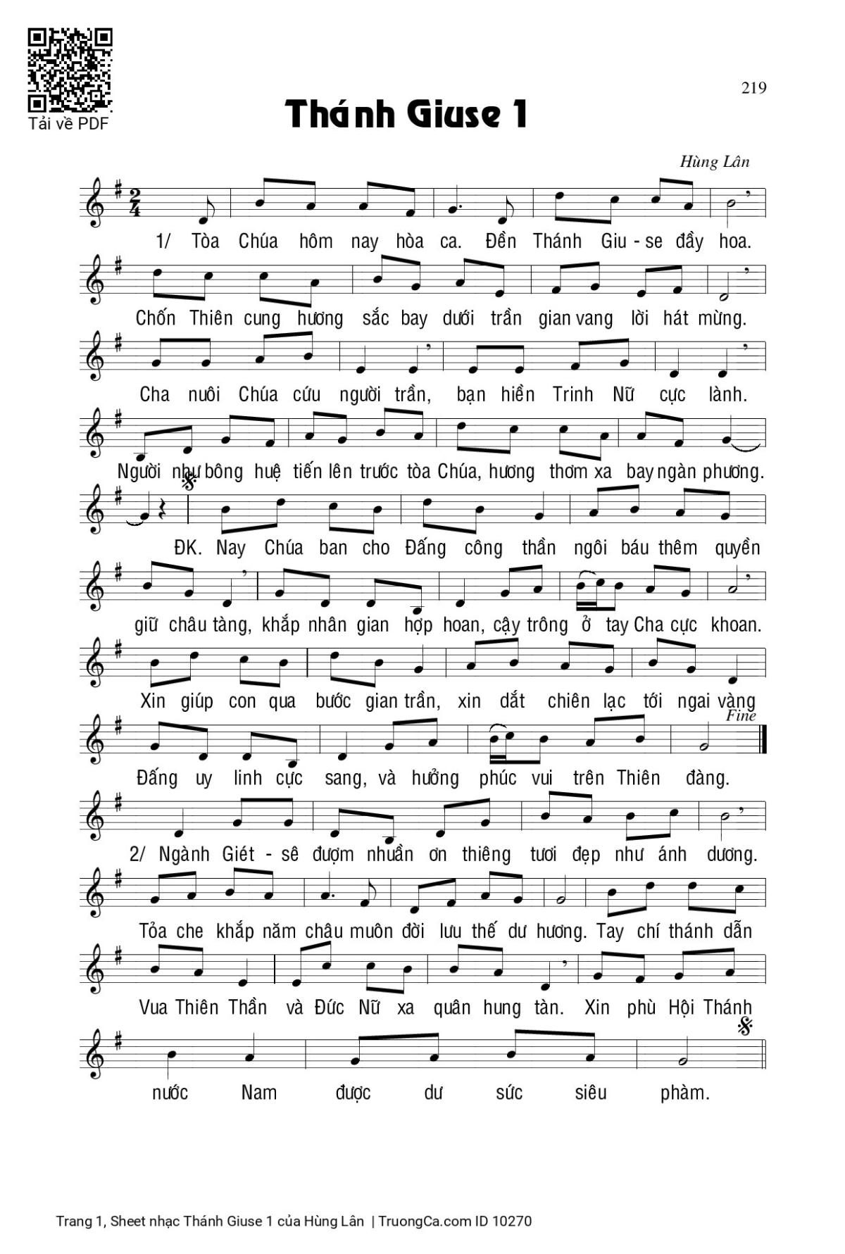 1. Tòa Chúa hôm nay hòa ca. Ðền Thánh Giu-se đầy hoa. Chốn Thiên cung hương sắc bay, dưới trần gian vang lời hát mừng. Cha nuôi Chúa Cứu người trần. Bạn hiền Trinh Nữ cực lành Người như bông huệ tiến lên trước tòa Chúa, hương thơm xa bay ngàn phương.