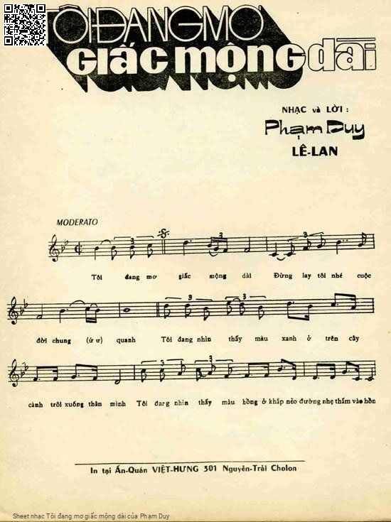 Phạm Duy Tôi đang mơ giấc mộng dài Đừng lay tôi nhé [PDF] [Sheet] [Lyrics] [Mp4/Midi]