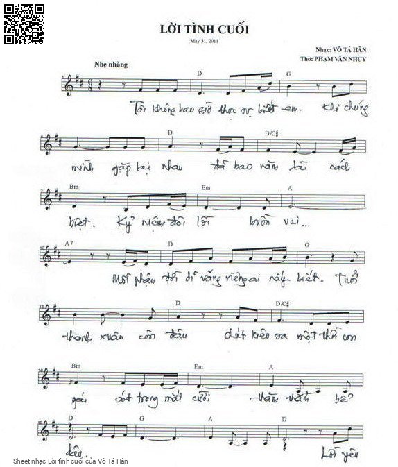 Võ Tá Hân Tôi không bao giờ thực sự biết em Khi chúng mình gặp lại nhau [PDF] [Sheet] [Lyrics] [Mp4/Midi]