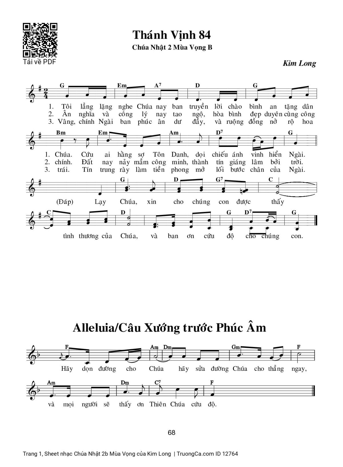 Kim Long Tôi lẳng lặng nghe Chúa nay ban truyền lời chào bình an tặng dân Chúa [PDF] [Sheet] [Lyrics] [Mp4/Midi]