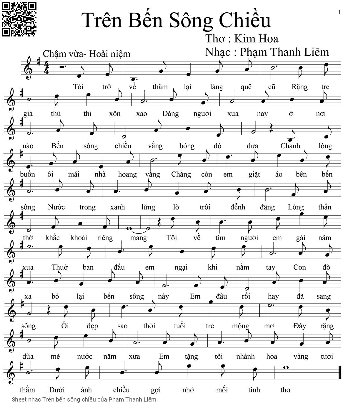 Phạm Thanh Liêm Tôi trở về thăm lại làng quê cũ Rặng tre già thủ thỉ xôn xao [PDF] [Sheet] [Lyrics] [Mp4/Midi]