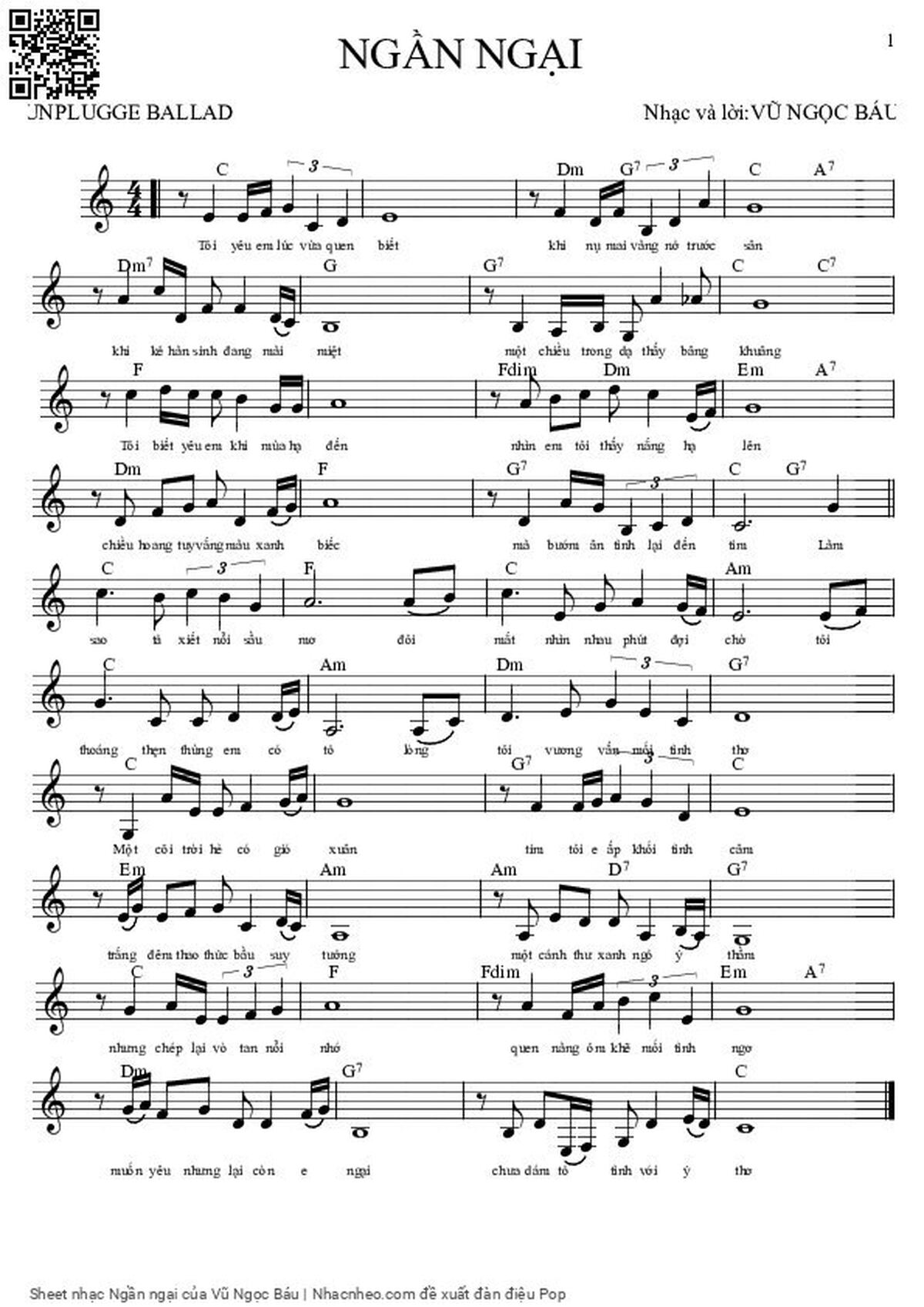 Transposition is the process of moving a song's melody and chords up or down in pitch by a constant interval. The direction of the transposition tool is indicated by a plus (+) sign for up and a minus (-) sign for down. Hover mouse over chords signs to see the chords chart of Ngần ngại song.