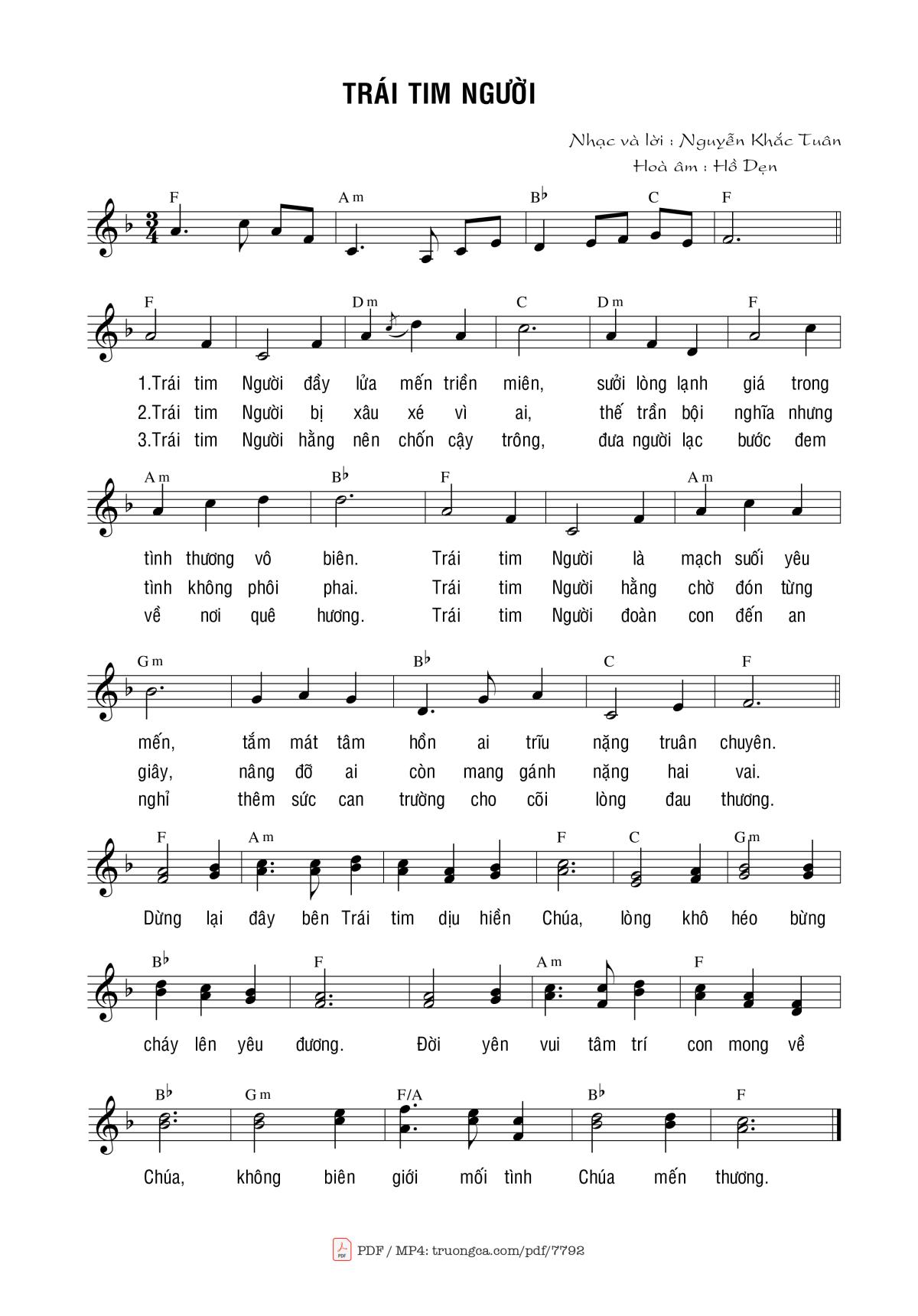 Nguyễn Khắc Tuần Trái Tim Người đầy lửa mến triền miên [PDF] [Sheet] [Lyrics] [Mp4/Midi]