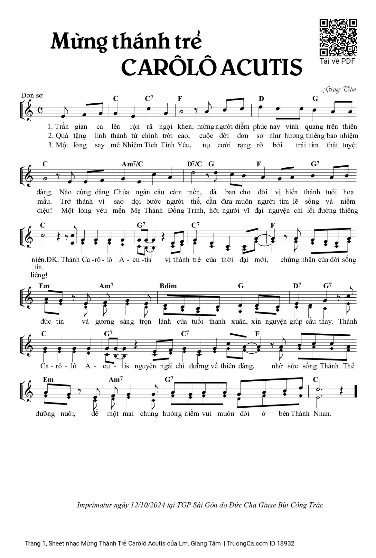 More similar sheets PDF Mừng Thánh Trẻ Carôlô Acutis: