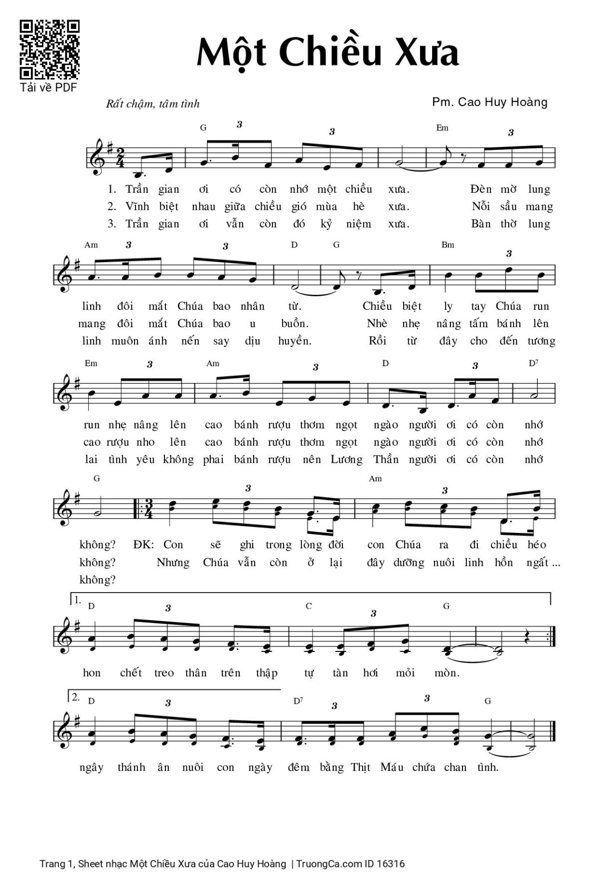 Transposition is the process of moving a song's melody and chords up or down in pitch by a constant interval. The direction of the transposition tool is indicated by a plus (+) sign for up and a minus (-) sign for down. Hover mouse over chords signs to see the chords chart of Một Chiều Xưa song.