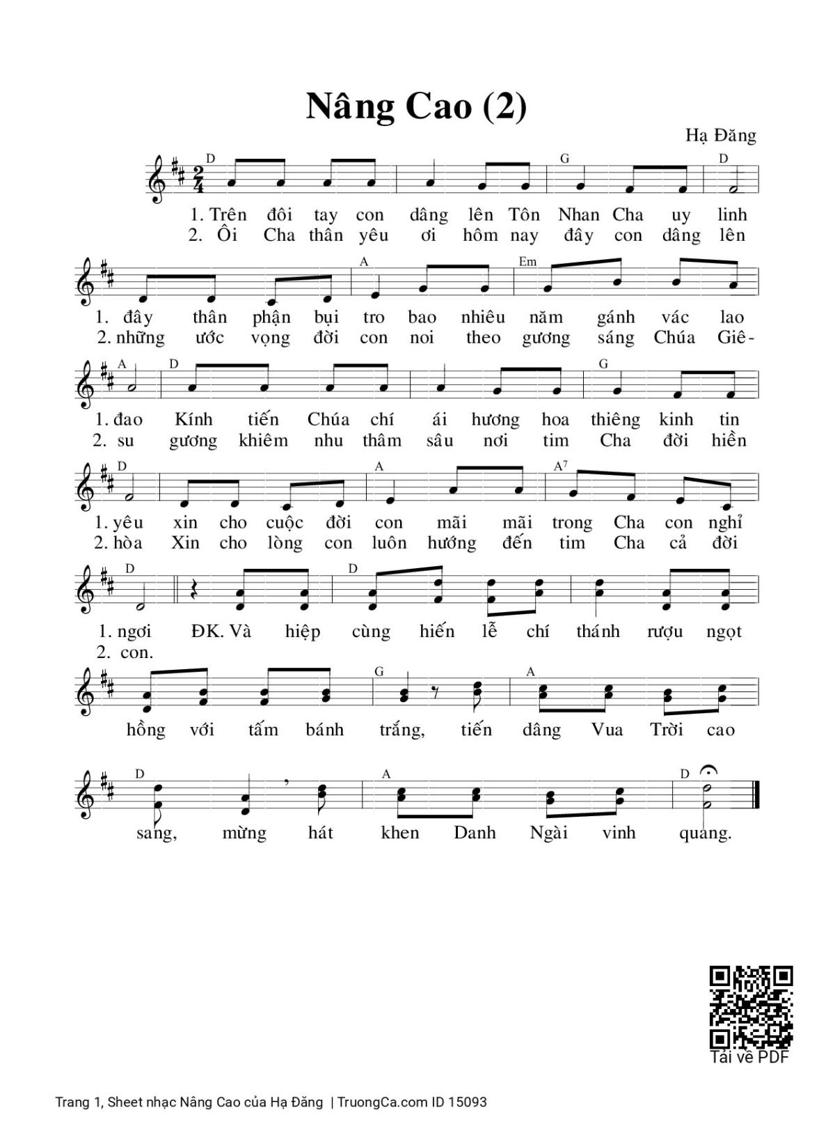 Transposition is the process of moving a song's melody and chords up or down in pitch by a constant interval. The direction of the transposition tool is indicated by a plus (+) sign for up and a minus (-) sign for down. Hover mouse over chords signs to see the chords chart of Nâng Cao song.