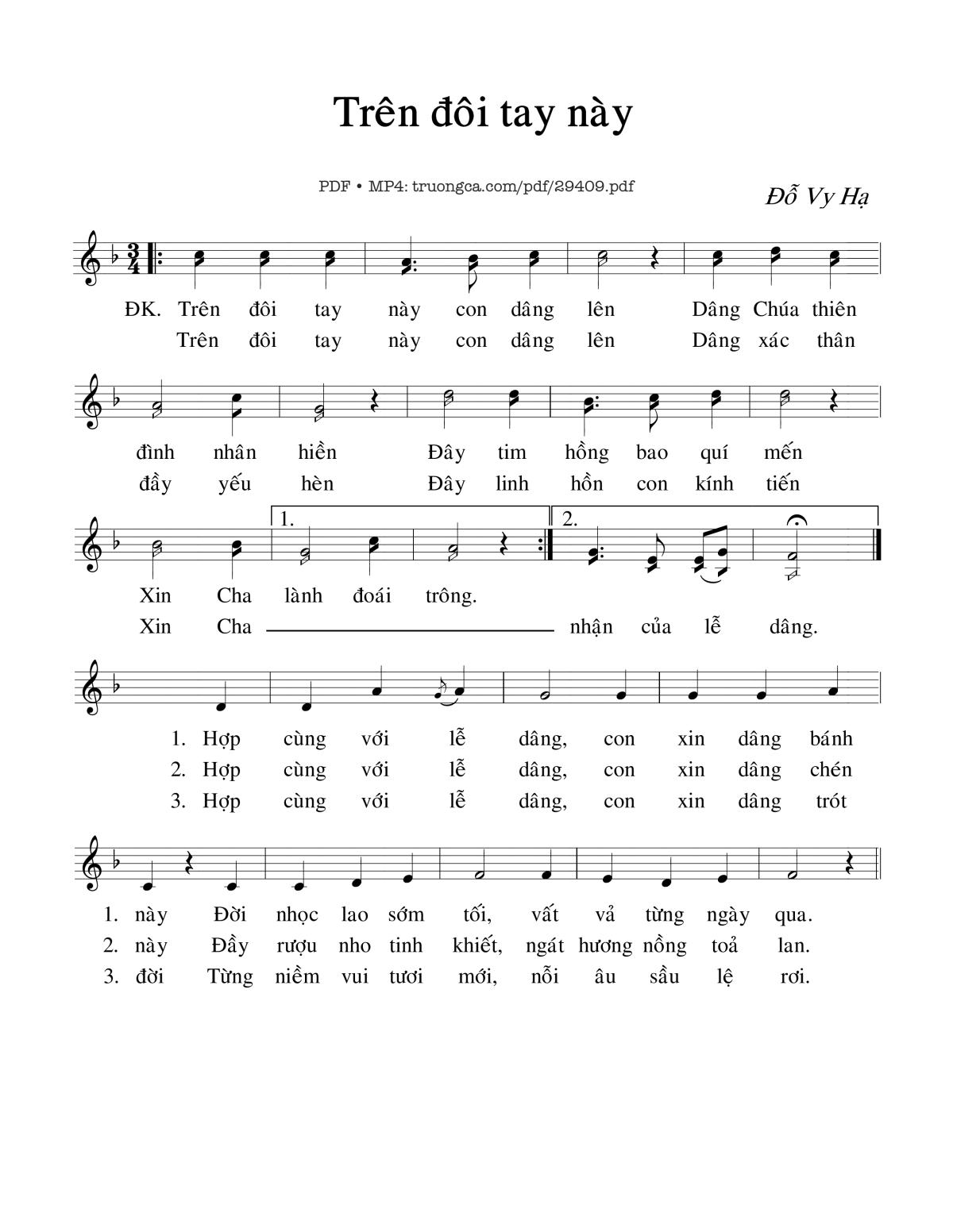 Trên đôi tay này con dâng lên, dâng Chúa thiên đình nhân hiền. Đây tim hồng bao quý mến xin Cha lành đoái trông