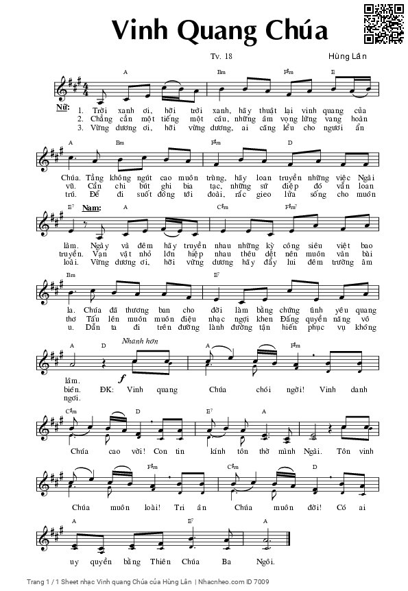 Hùng Lân Trời xanh ơi hỡi trời xanh hãy thuật lại vinh quang của Chúa [PDF] [Sheet] [Lyrics] [Mp4/Midi]