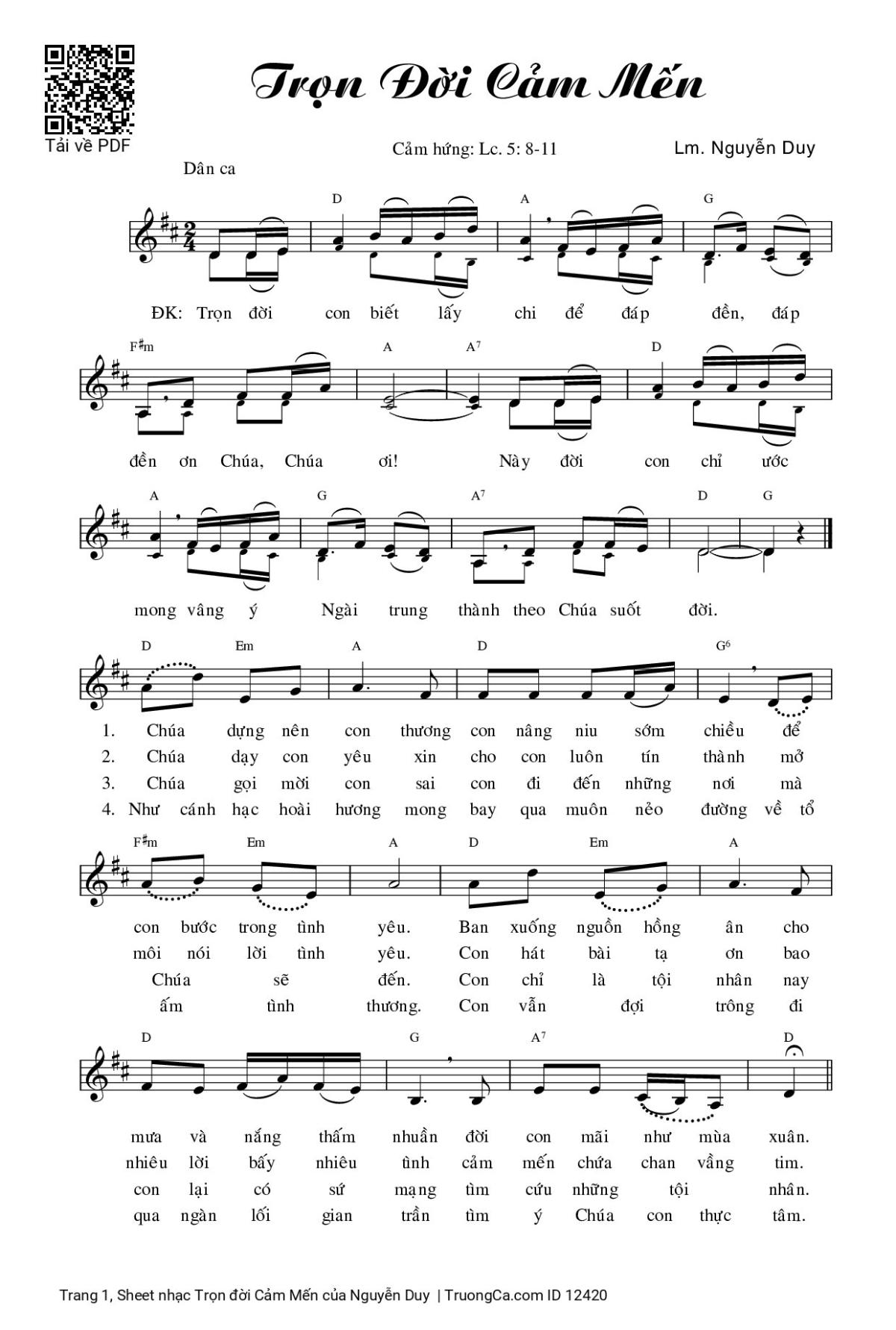 Nguyễn Duy Trọn đời con biết lấy chi để đáp đền [PDF] [Sheet] [Lyrics] [Mp4/Midi]