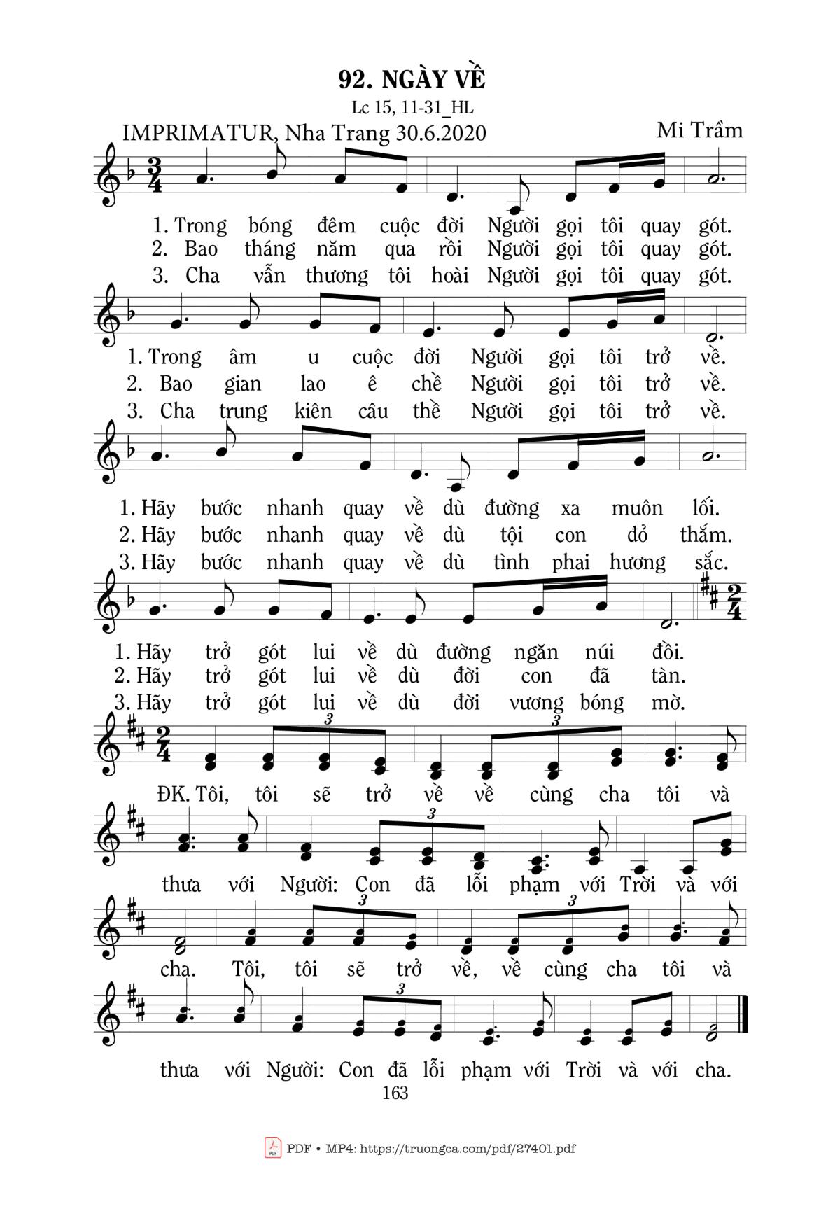 Điệp khúc. Tôi, tôi sẽ trở về, về cùng cha tôi và thưa với Người: Con đã lỗi phạm với Trời và với cha. Tôi, tôi sẽ trở về, về cùng cha tôi và thưa với Người: Con đã lỗi phạm với Trời và với cha.