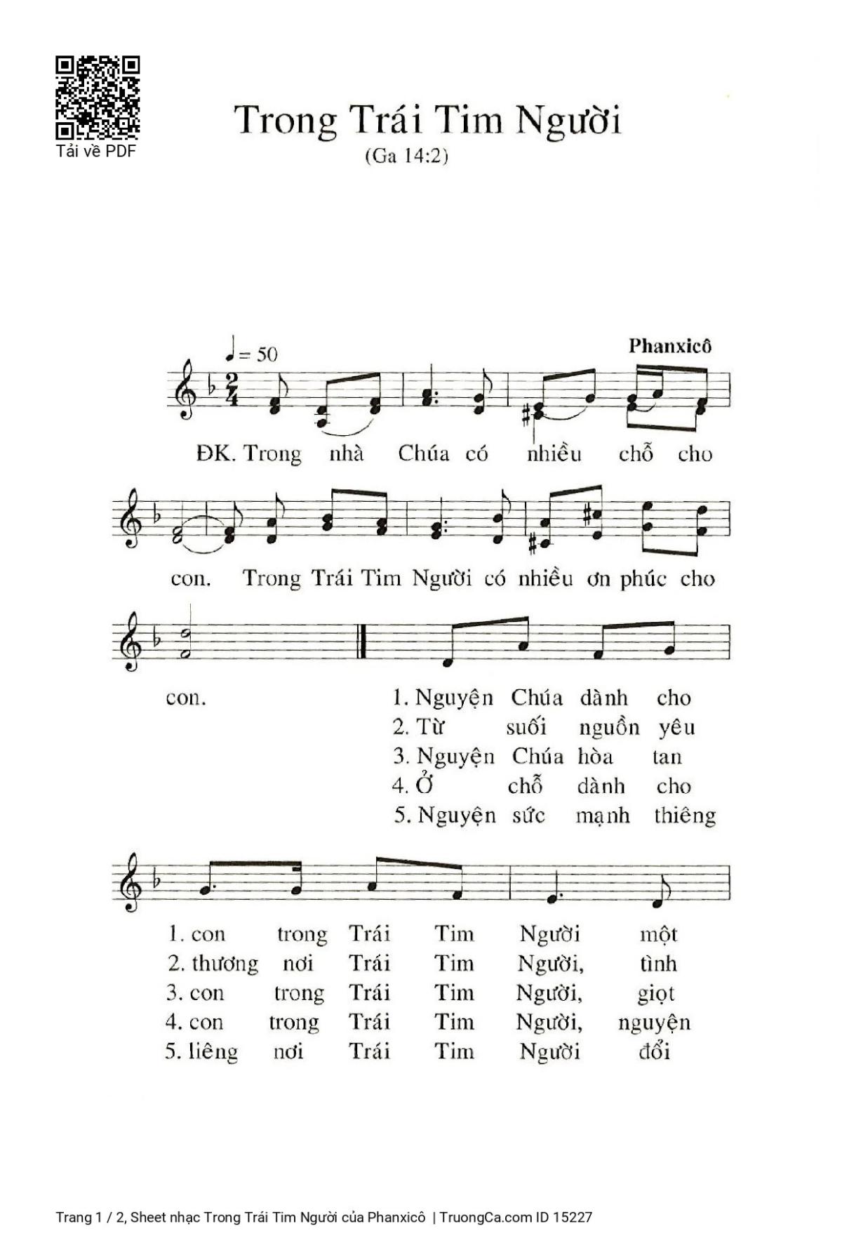 Điệp khúc. Trong nhà Chúa có nhiều chỗ cho con. Trong Trái Tim Người có nhiều ơn phúc cho con.