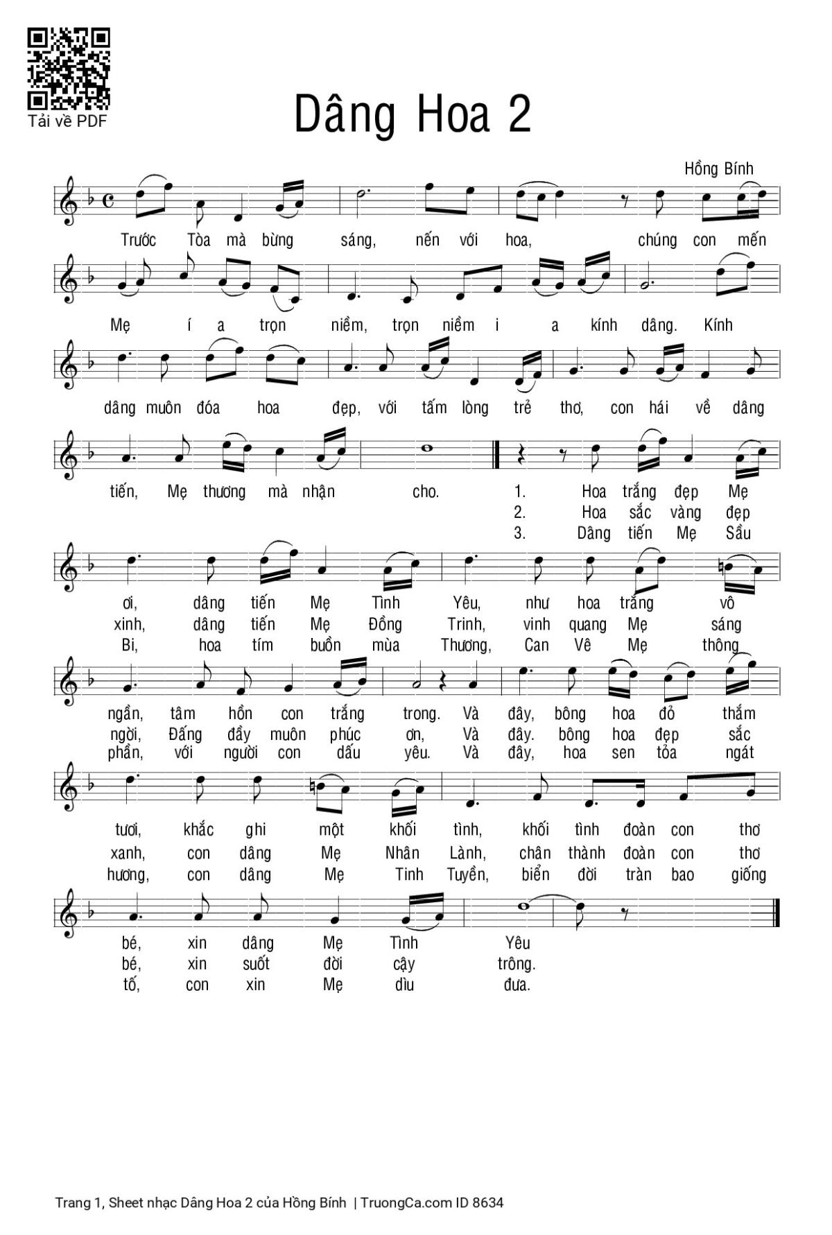 The Videos/audios Dâng Hoa 2 by Hồng Bính were embed from Youtube, Musescore or the other 3rd links. Videos are subject to 3rd's copyright control and may be removed by YouTube's copyright rules and 3rd's policies or maybe included advertisements. If you cannot access to these songs, this mean that have been removed.