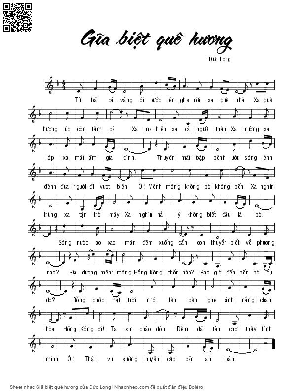 Đức Long Từ bãi cát vàng tôi bước lên ghe rời xa quê nhà [PDF] [Sheet] [Lyrics] [Mp4/Midi]
