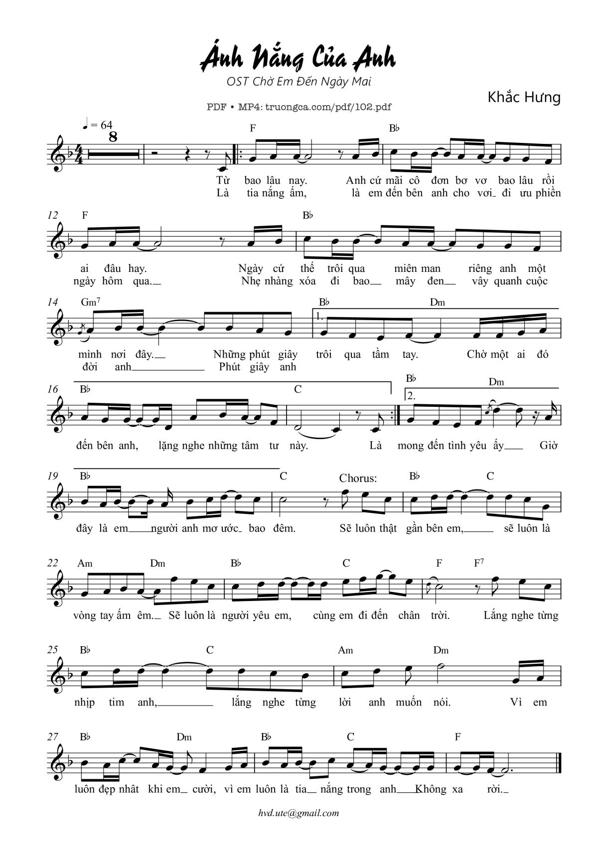 The Videos/audios Ánh nắng của anh by Khắc Hưng were embed from Youtube, Musescore or the other 3rd links. Videos are subject to 3rd's copyright control and may be removed by YouTube's copyright rules and 3rd's policies or maybe included advertisements. If you cannot access to these songs, this mean that have been removed.