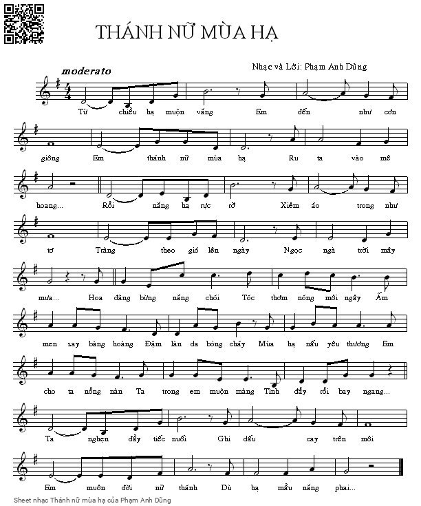 The Videos/audios Thánh nữ mùa hạ by Phạm Anh Dũng were embed from Youtube, Musescore or the other 3rd links. Videos are subject to 3rd's copyright control and may be removed by YouTube's copyright rules and 3rd's policies or maybe included advertisements. If you cannot access to these songs, this mean that have been removed.