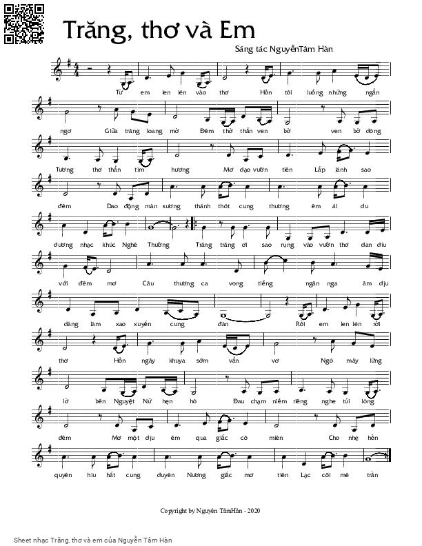 Nguyễn Tâm Hàn Từ em len lén vào thơ Hồn tôi luống những ngẩn ngơ [PDF] [Sheet] [Lyrics] [Mp4/Midi]