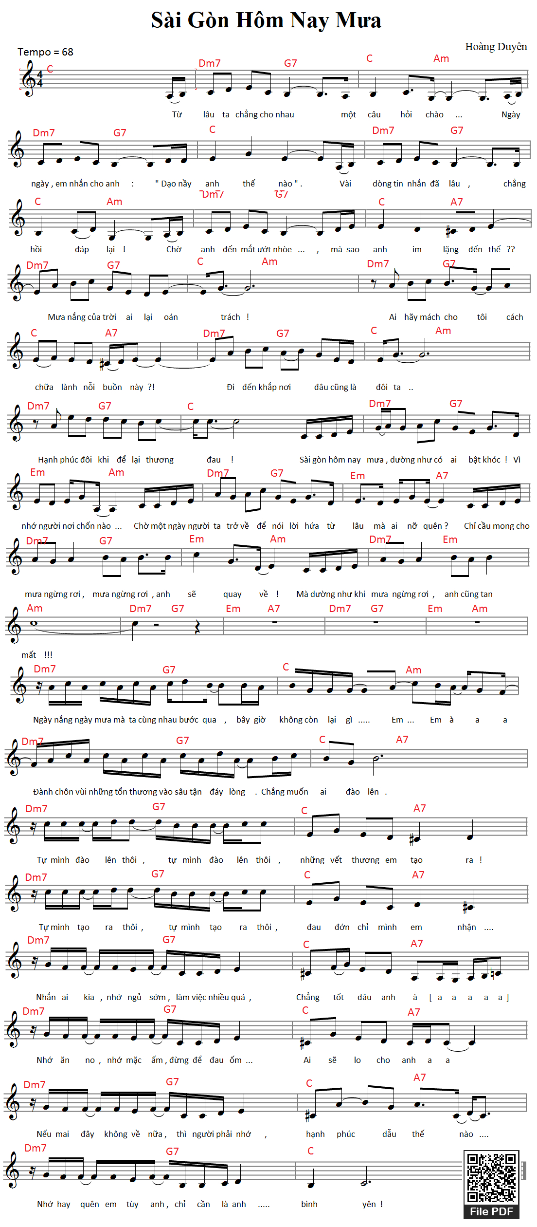 The Videos/audios Sài gòn hôm nay mưa by Hoàng Duyên were embed from Youtube, Musescore or the other 3rd links. Videos are subject to 3rd's copyright control and may be removed by YouTube's copyright rules and 3rd's policies or maybe included advertisements. If you cannot access to these songs, this mean that have been removed.