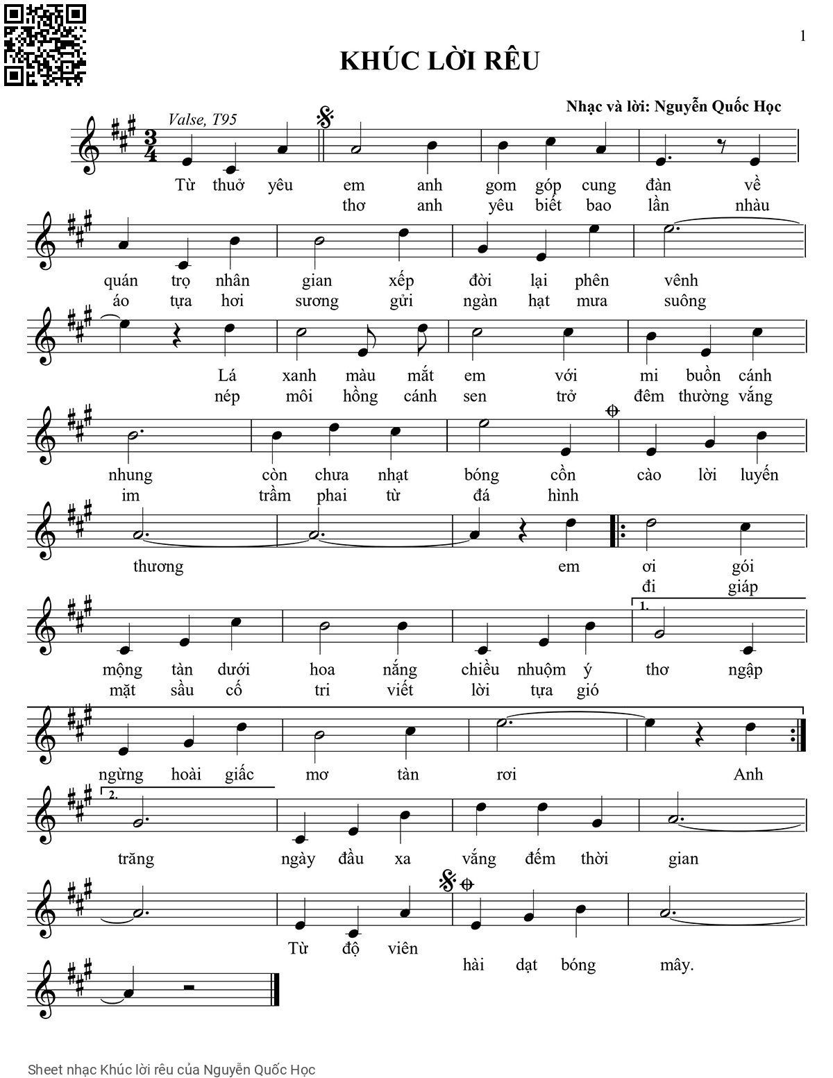 The Videos/audios Khúc lời rêu by Nguyễn Quốc Học were embed from Youtube, Musescore or the other 3rd links. Videos are subject to 3rd's copyright control and may be removed by YouTube's copyright rules and 3rd's policies or maybe included advertisements. If you cannot access to these songs, this mean that have been removed.