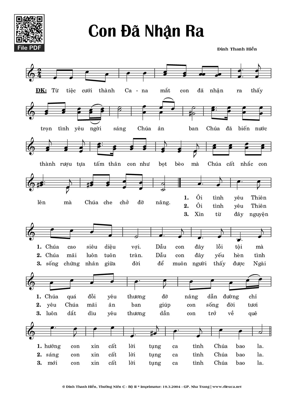 🌾 Imprimatur, Thông tin chuẩn nhận dùng trong phụng vụ Công Giáo: Ca Nguyện – Hiệp Lễ. Imprimatur – Gp. Nha Trang: 19.03.2004