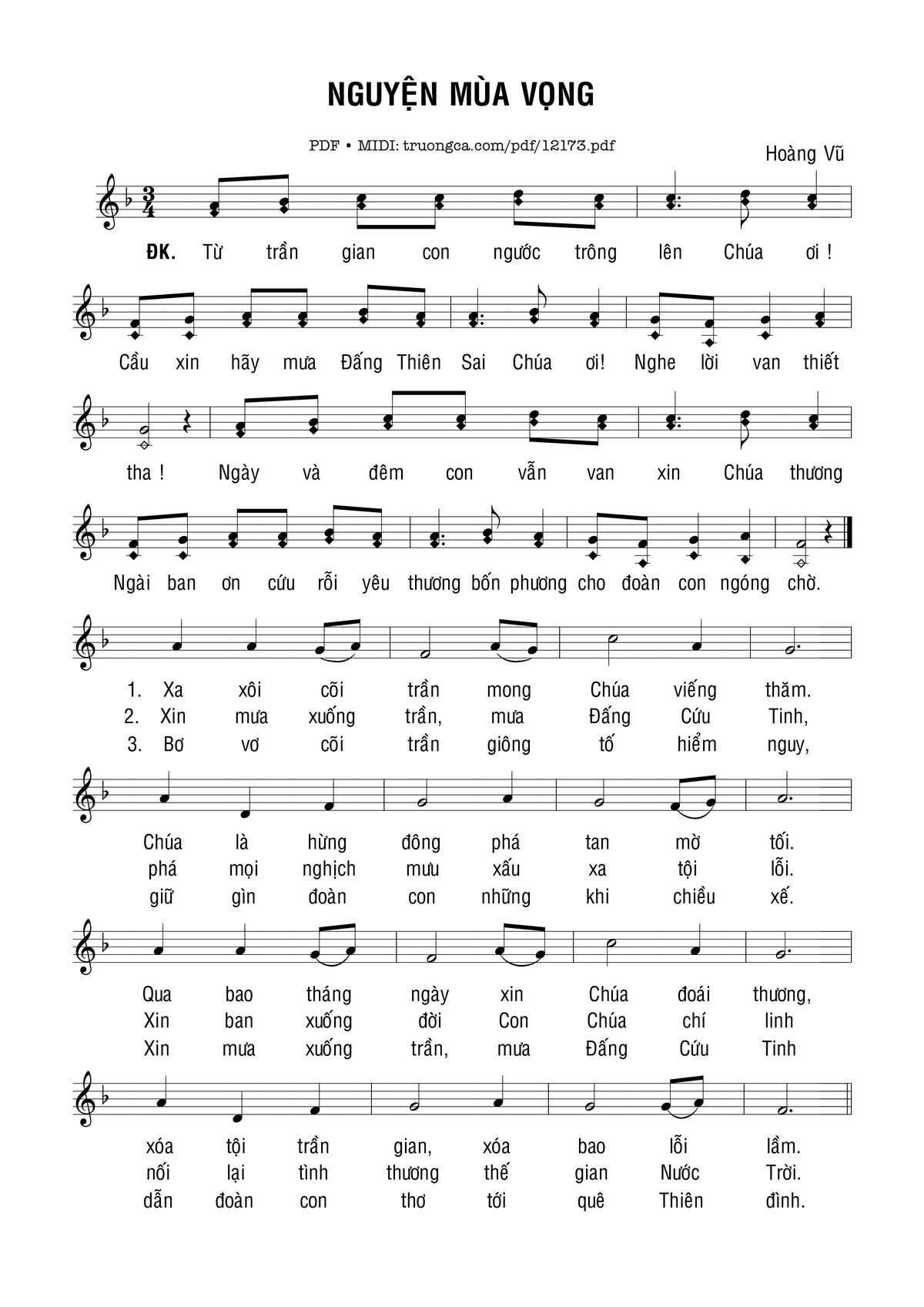 Hoàng Vũ Từ trần gian con ngước trông lên Chúa ơi [PDF] [Sheet] [Lyrics] [Mp4/Midi]
