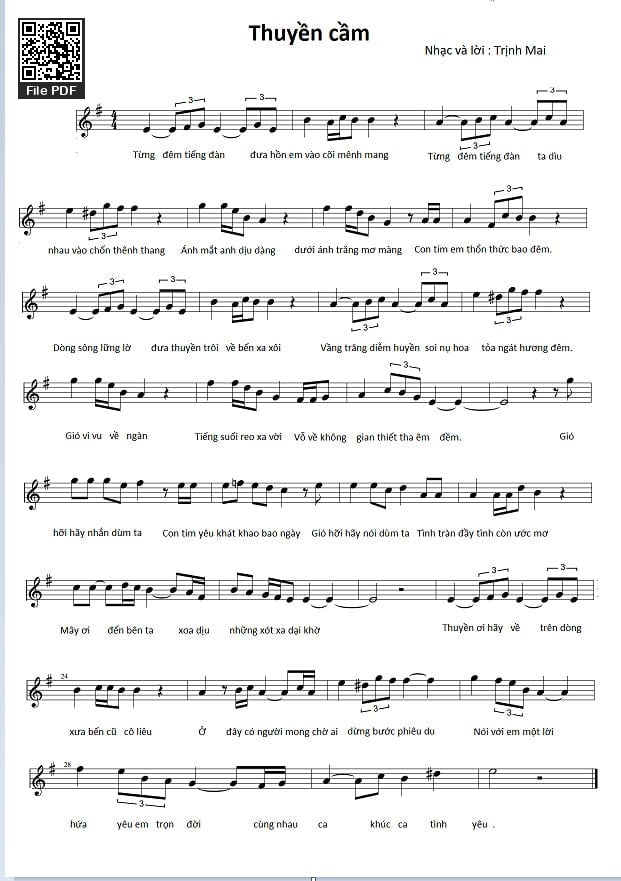 Trịnh Mai Từng đêm tiếng đàn đưa hồn em vào cõi mênh mang [PDF] [Sheet] [Lyrics] [Mp4/Midi]