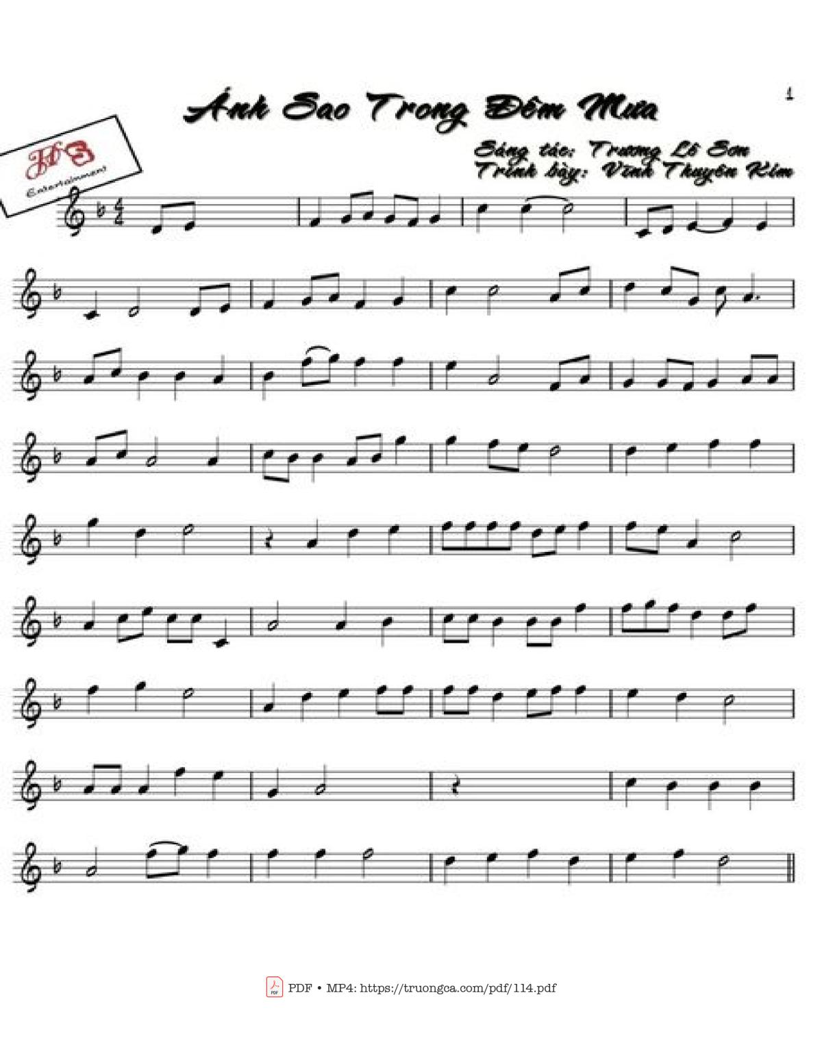 The Videos/audios Ánh sao trong đêm mưa by Trương Lê Sơn were embed from Youtube, Musescore or the other 3rd links. Videos are subject to 3rd's copyright control and may be removed by YouTube's copyright rules and 3rd's policies or maybe included advertisements. If you cannot access to these songs, this mean that have been removed.