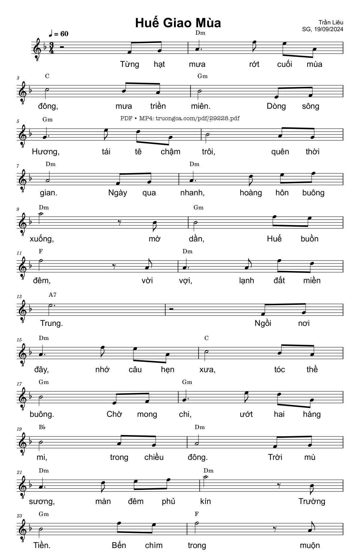 Trần Liêu Từng hạt mưa rớt cuối mùa đông mưa triền miên [PDF] [Sheet] [Lyrics] [Mp4/Midi]