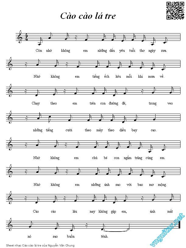 The Videos/audios Cào cào lá tre by Nguyễn Văn Chung were embed from Youtube, Musescore or the other 3rd links. Videos are subject to 3rd's copyright control and may be removed by YouTube's copyright rules and 3rd's policies or maybe included advertisements. If you cannot access to these songs, this mean that have been removed.