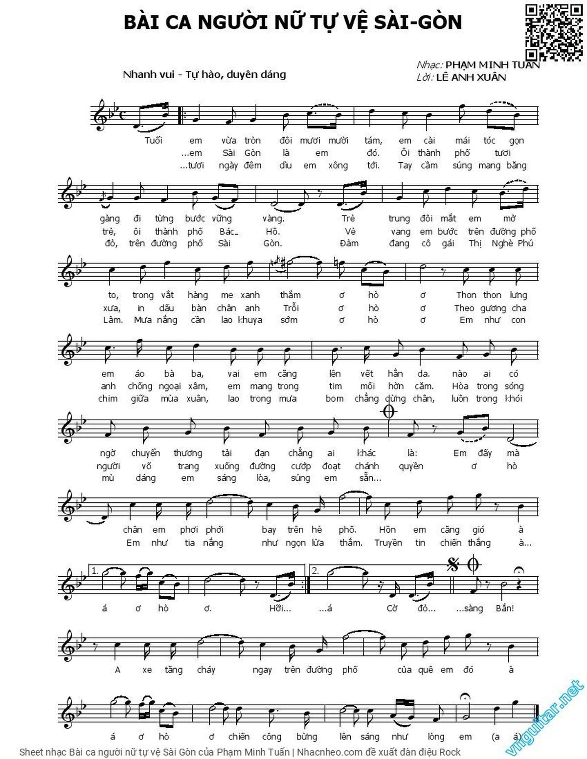 Phạm Minh Tuấn Tuổi em vừa tròn đôi mươi mười tám [PDF] [Sheet] [Lyrics] [Mp4/Midi] [Story and comment]