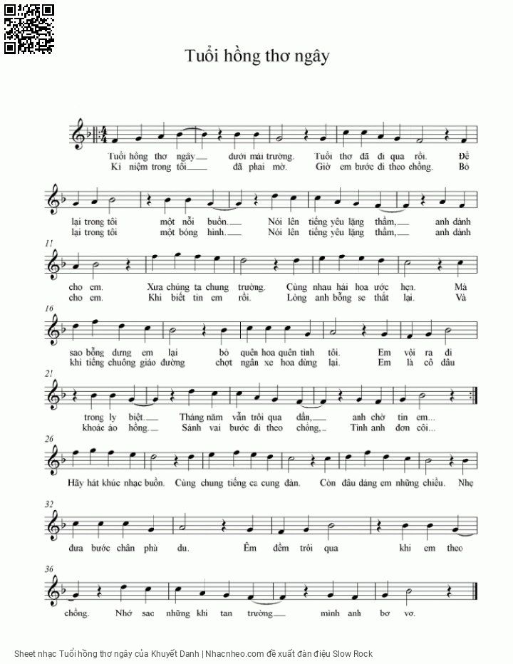 Khuyết Danh Tuổi hồng thơ ngây dưới mái trường [PDF] [Sheet] [Lyrics] [Mp4/Midi]