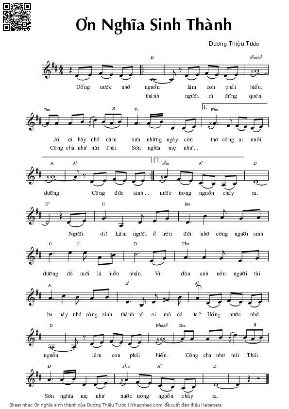 Dương Thiệu Tước Uống nước nhớ nguồn Làm con phải hiếu [PDF] [Sheet] [Lyrics] [Mp4/Midi] [Story and comment]